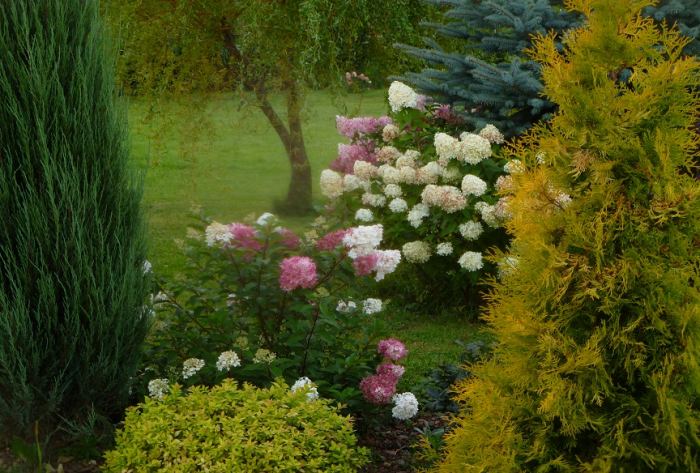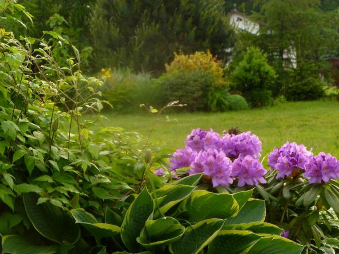 Sosny, magnolie i kamień polny....ogród zwyczajny. |