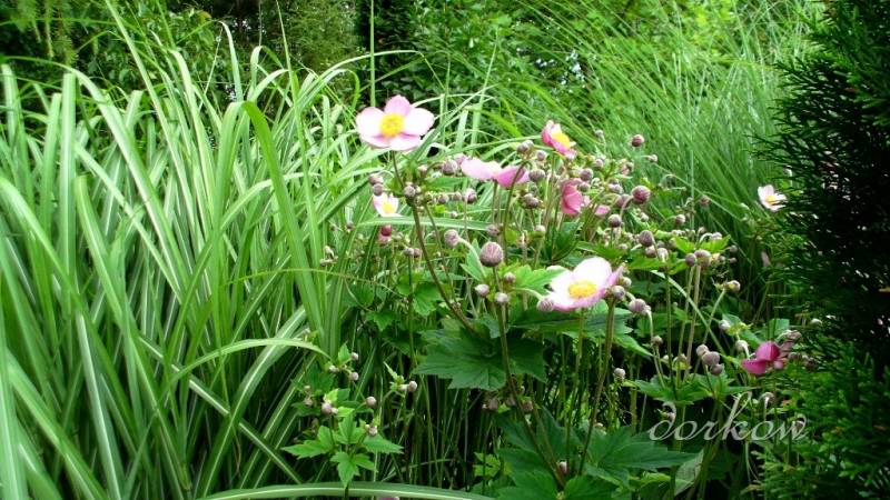 Pogoda u mnie dobra. Nie jest zbyt gorąco, deszcz pada od czasu do czasu. Roślinom to odpowiada. Choć w ogrodzie czuć już jesień i to bardzo. Zwłaszcza po roślinach. Kwitną już zawilce, kwitną hortensje bukietowe, trawy zaczynają pokazywać swoje kłosy, zwłaszcza te wczesne. Hosty przekwitają, zawiązują nasiona. Kolejne zakwitają. Nawet motyle zaczęły przylatywać, bo kwitnie budleja..