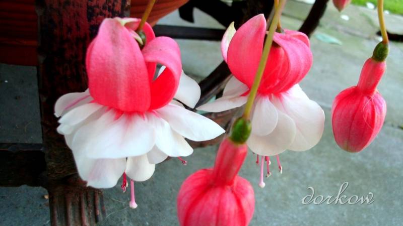 Kwitną fuksje. Kilka nie dało rady, przez zimę, ale i tak jest dobrze.