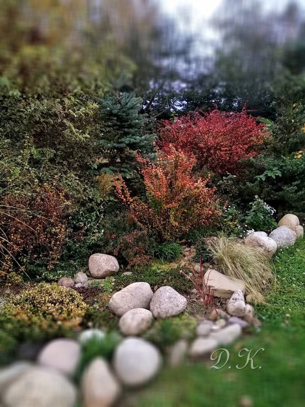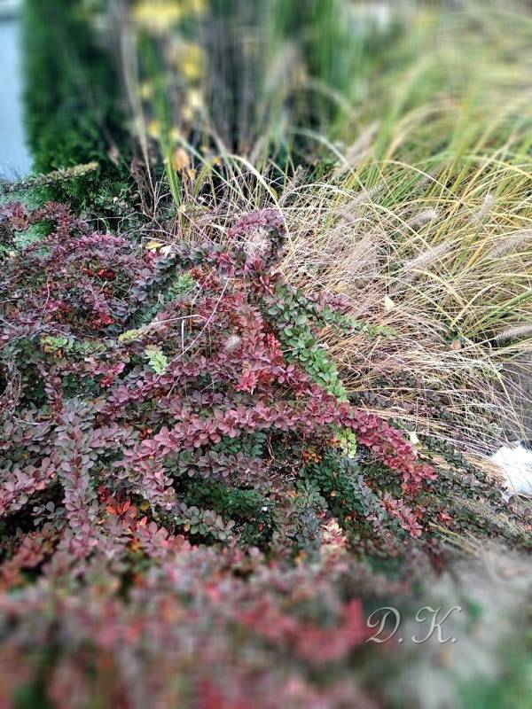 I berberysy Thunberga. To grupa roślin, które są ze mną od początku powstawania ogrodu. Te ich faktury, te kolory. Są dla mnie piękne o każdej porze roku. Nie przeszkadzają mi ich kolce, że się sieją czasem bez żadnego planu. Ale ja tego nie zauważam. Zachwycają mnie i widzę ich urodę w każdym zakątku mojego ogrodu.