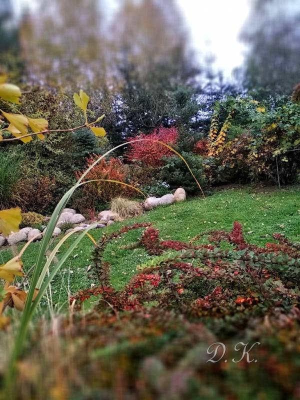 I są jeszcze buki. Są ozdobą na rabacie, trudną dla mnie do pokazania i są ogrodzeniem, formą żywopłotu. Takim otuleniem ale nie zamknięciem przestrzeni.