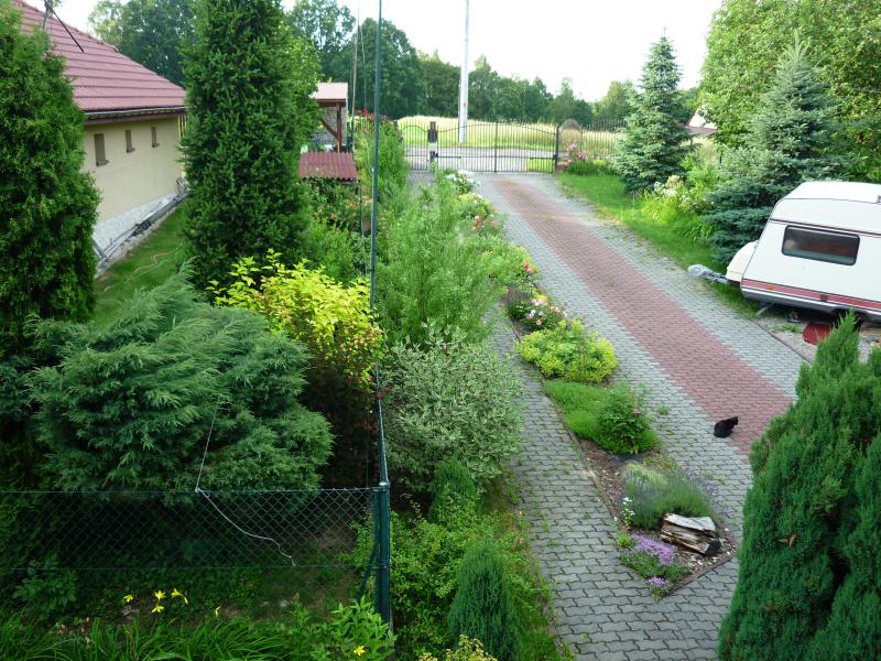 Działka ma 14 arów. Część terenu zajęta jest przez dom i podjazd. Od strony wschodniej rośnie lasek, właściwie zagajnik, samosiew. Od południa las