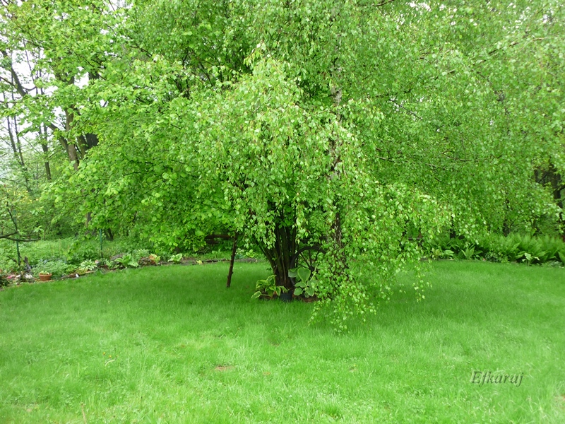 Na ławeczce pod brzózkami lubię siedzieć, choć teraz staram się tam przebywać jak najmniej, bo na brzozie budka, a w budce maleństwa się wykluły. Nie chcę rodziców denerwować.