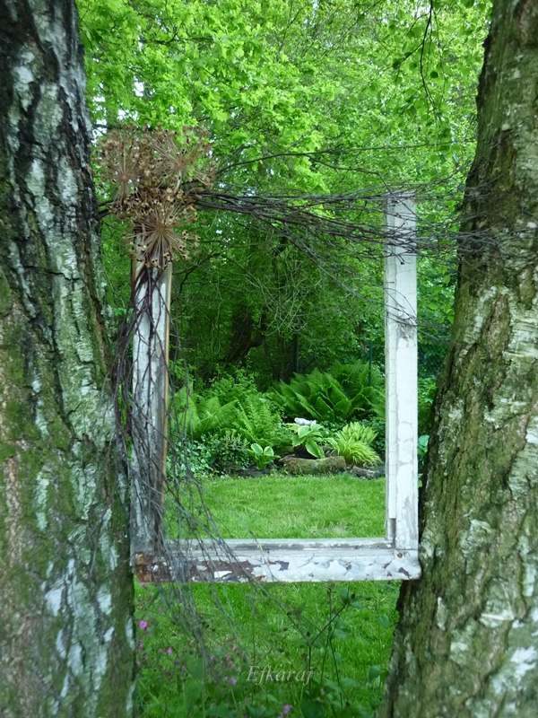 Wiesiu, ramka okienna leżała w drewutni już kilka lat, trzeba było ją jakoś zaadaptować. Mam dwie takie ramy, obie bez górnej belki... i nikt nie wie dlaczego...
