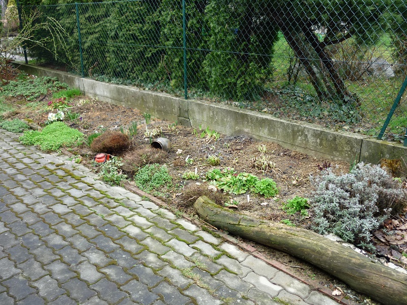 Mam taka jedną, najstarszą rabatkę. Najmniejsza, szerokości 1,20, długości ok.7metrów, ale za to z największą ilością roślin wsysniętych. W marcu widać na niej glebę