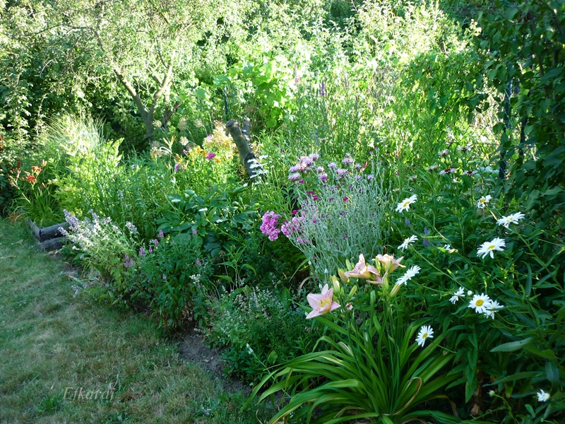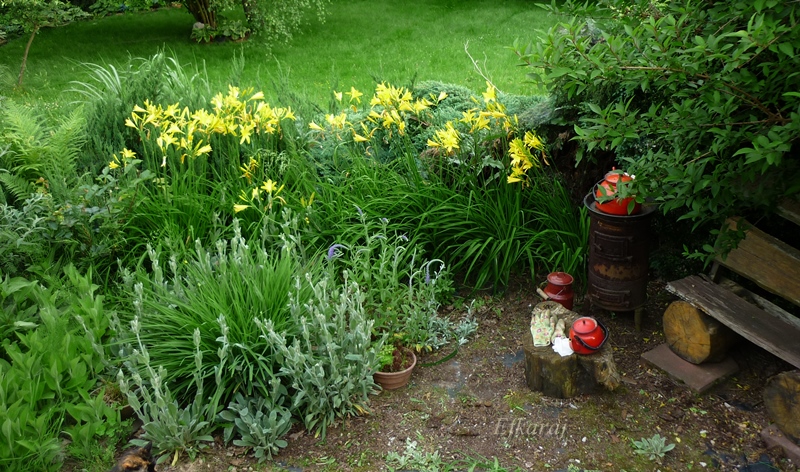 Podciągnę jeszcze tę rabatę w lewo, żeby się zmieścił Łokietek, bo biedactwo całkiem hostami zarosło.