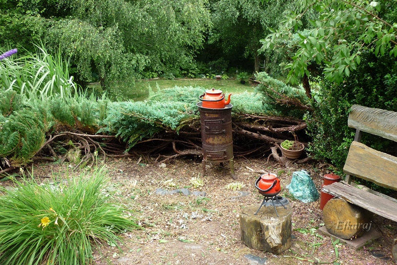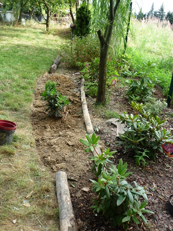 Przy okazji powiekszyłam również trochę rabatę królewską, bo Sobieski stał prawie cały czas w słońcu, a Jagiełło miał do towarzystwa dość mocno rozrastającego się rdesta. Na zdjęciu widać świeżo wykopana glinę, nie jest przesuszona, w cieniu jeszcze nie ma całkowitej suszy.