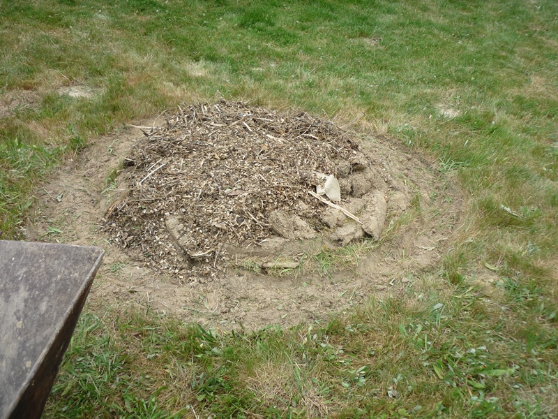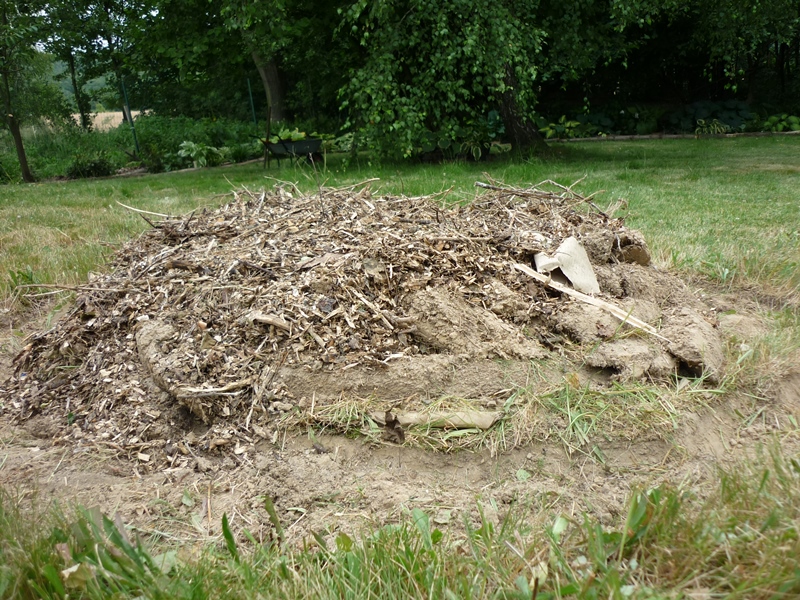 I na razie tak zostanie, bo mam dwa bąble na prawej dłoni. Miejsce ma 4 metry na 2,5m. Na ten kopiec na środku jeszcze dam trochę piachu i nieprzerobiony kompost. Przykryję folią i do następnego sezonu musi się przetwarzać. Tak właśnie powstają u mnie rabatki.