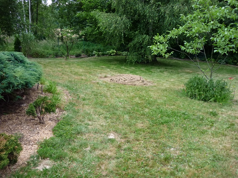 A ponieważ na suchy trawnik też nie jestem w stanie się patrzeć, to zaczęłam kopać... Będzie rabata z roślinami, które korzenią się głeboko. Nie wiem czy nie strzelam sobie tym w stopę. To się okaże w kolejnych sezonach.
