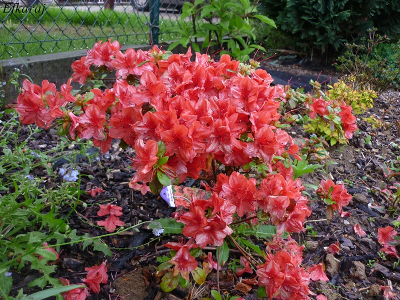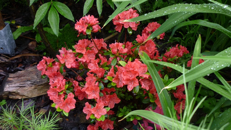 Mam zagwozdkę z azalią japońską 'Geisha Red'. Pięknie prezentowała się jesienią, gdy liście przybrały płomienne kolory, wobec tego nabrałam apetytu na krwisto czerwone kwiaty... a tu zonk... bo chyba trafiła mi się druga 'Geisha Orange'