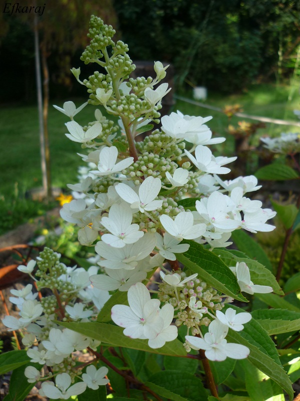 Danusiu, hortensje bukietowe szczerze polecam... choć nie wiem, które są najmniejsze. Ponoć 'Bobo' nie rośnie wysoko, stąd jej nazwa. Ale u mnie już osiągnęła ponad metr szerokości, a wiechy ma ogromne. Może w donicy będzie nieco węższa, a może wystarczy korygować ją cięciem.