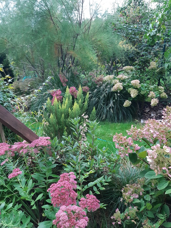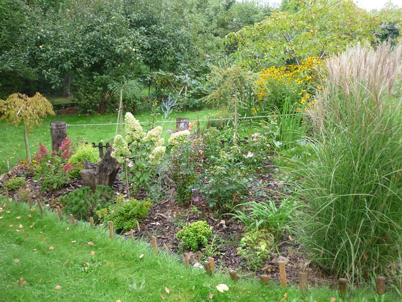 Lekkie zmiany zaczęłam wprowadzać na królewskiej. Przeniosłam Królową Jadwigę bliżej lasu, a na jej miejsce wsadziłam klona 'Katsua', który rosnąc w słońcu bardzo się męczył. Tutaj będzie miał jasny cień, a wiosną odpowiednią ilość promieni słonecznych. Może w przyszłym roku zobaczę jak wygląda nie mając spalonych liści.