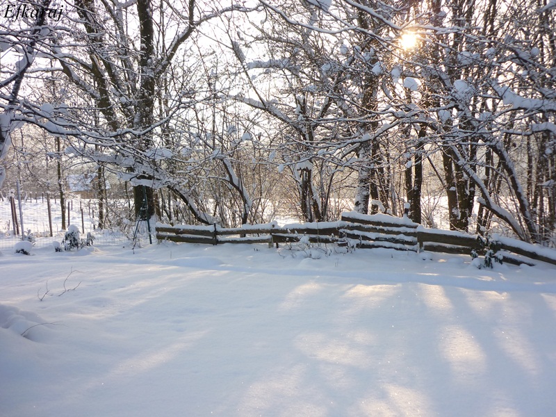 Tak więc rano zabrałam się za łopaty i namachałam kolejne góry śniegowe. Między czasie wyszło słonko, więc poszłam za dom porobić kilka zdjęć. Tak na pamiątkę, bo nie wiadomo, kiedy znów zobaczę tyle śniegu.
