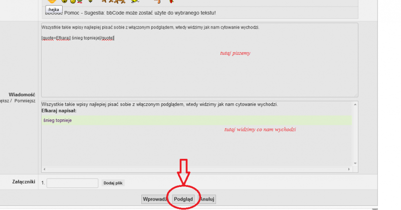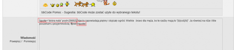 =imię nie trzeba wpisywać numeru posta. Jeśli tego nie wpiszemy, tylko w nawiasie kwadratowym będzie amo quote, będzie widoczny cytat w ten sposób: