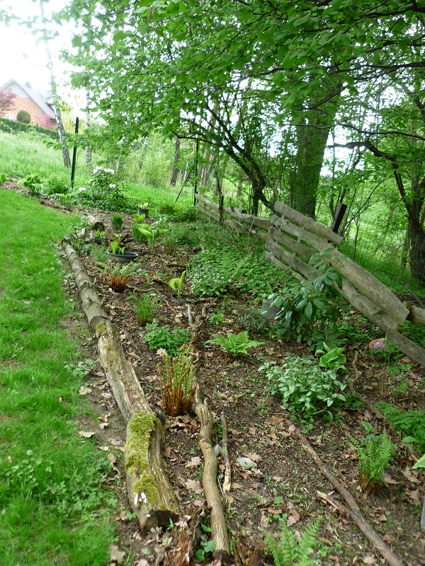 Jeszcze zostało wyciągnąć te resztki agrotkaniny i dosypać kory. Hakonechloe ładnie się rozrasta, dużo lepiej niż pod lasem