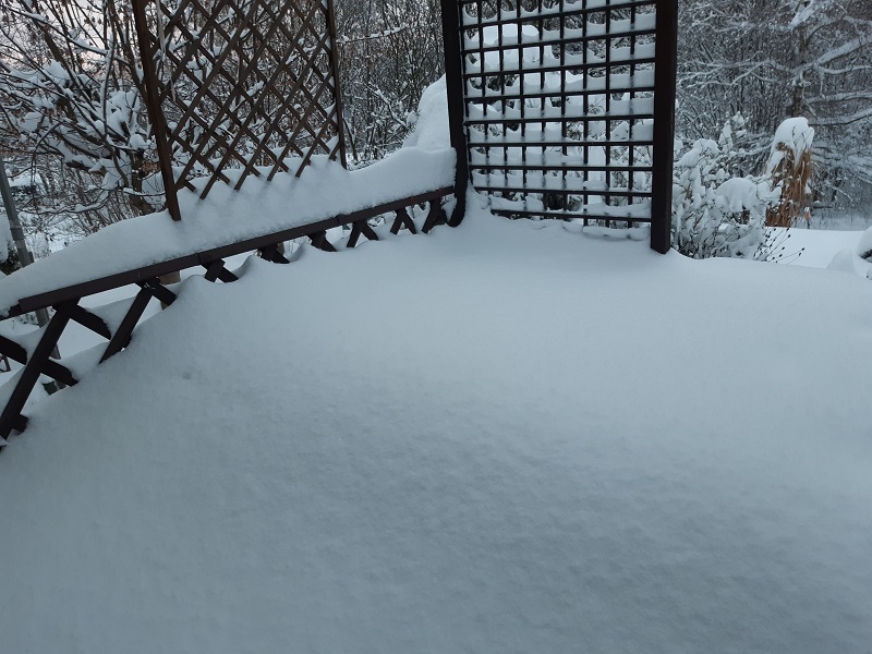 U nas też codziennie odśnieżanie, chyba wiele krzewów i drzew będzie ciętych wiosną. Nawet nie ma jak otrzepac bo za chwilę znowu dosypuje. Odśnieżaniem głównie zajmuje się M. A ja karmie ptaki i psa :)