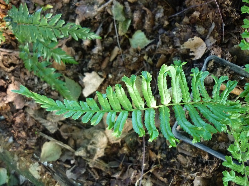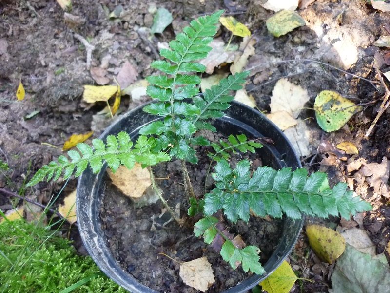 Polystichum polyblepharum póki co ma bardzo wąskie liście. Może dlatego, że to młoda roślina.