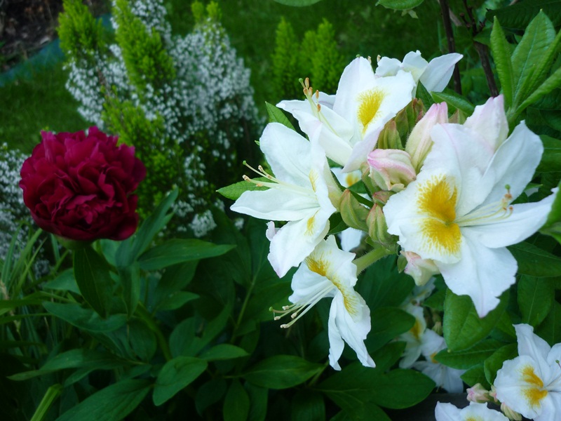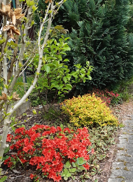 ale gdzie nie gdzie pojawiły się kolorowe plamki azalii japońskich