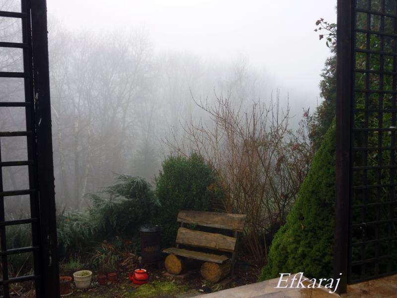 Dzisiejszy dzień pochmurny i mglisty. Lubię ogród spowity mgłą...jak mam wolne oczywiście :diabelek