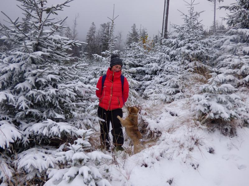 Iwonko Biały piesek w zimie to duży problem,wieczorem gdy idzie siusiu to zawsze ją szukam z latarką