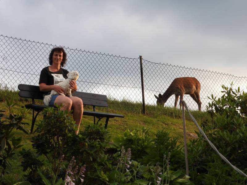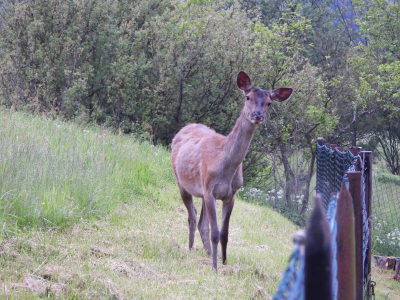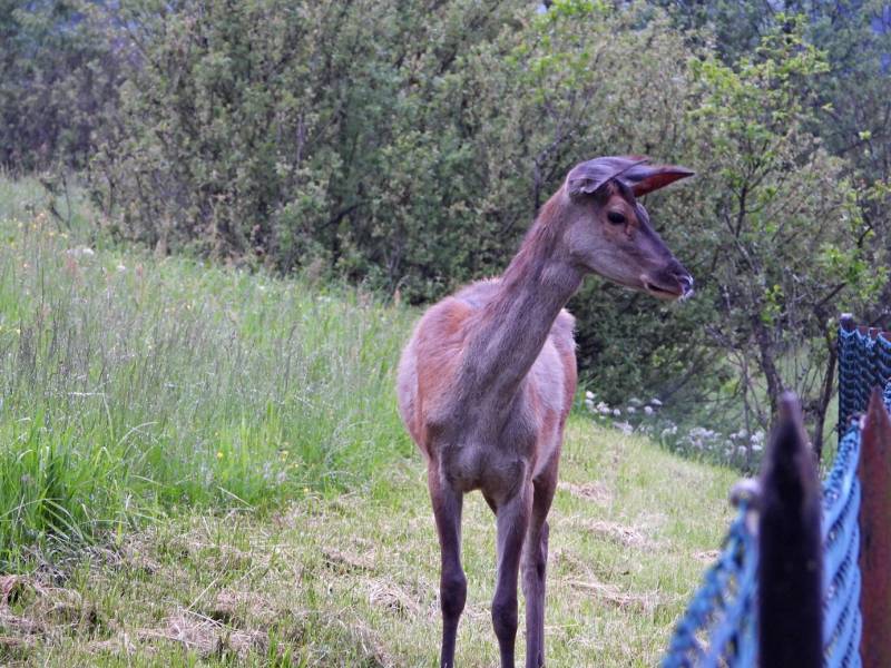 łania zagląda czasami niby jest ostrożna a ciągle na ogród patrzy ,ziemniaczka pewno by skubła