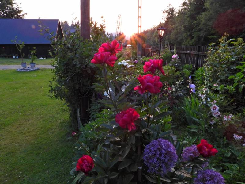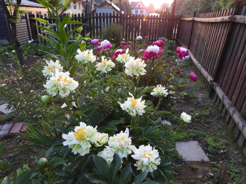 Do tej pory pogoda służyła piwoniom bardzo długo trzymały kwiaty od jutra upał i pewno te co sie rozwiną nie będą wstanie się utrzymać. Dobrze że mamy studnie to co kilka dni napełniamy beczki ale jako tako kwiatów w ogrodzie nie podlewam ,tylko doniczkowe i woda dla kaczek.