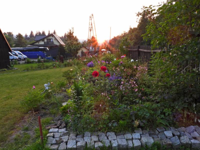 zdziwiona i zdezorientowana wryła sie pod śpiwór, ja byłam tak zmęczona że niby szybko usnęłam ale jakieś dziwne sny miałam.Na dodatek po zamknięciu drzwi na skobel od środka Pusia zaczęła warczeć, nie jeden by miał pietra a ja wiedziałam że ruszające się gałęzie bzu w oknie pobudzają Pusi fantazję zbliżających sie intruzów. O 4 wstałam spakowałam sie i na 6 byłam w domu, aby o.6.30 zrobić chłopom kawę.