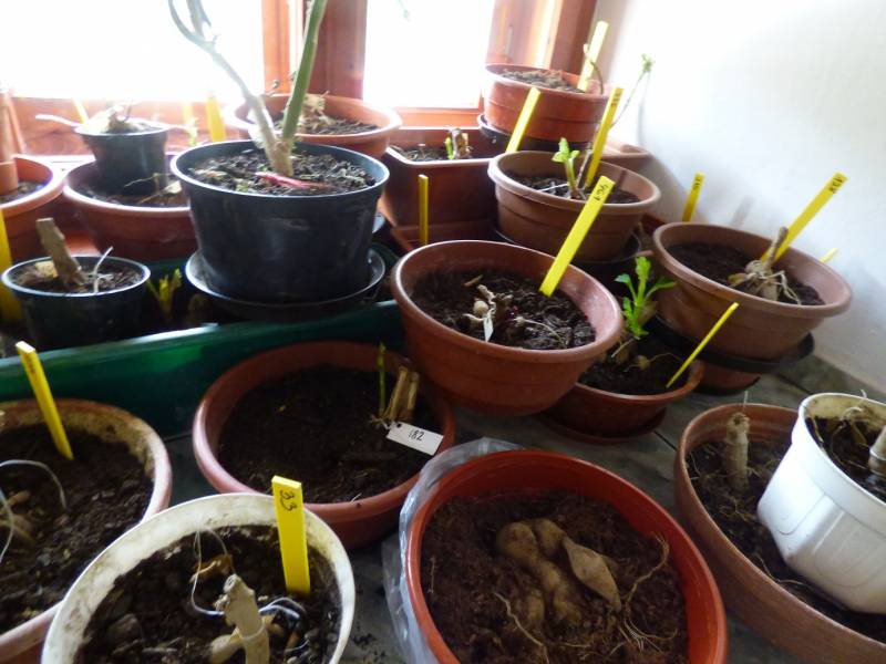 Dalie bezpiecznie rosna w doniczkach,juz wyniesione na dwór.
