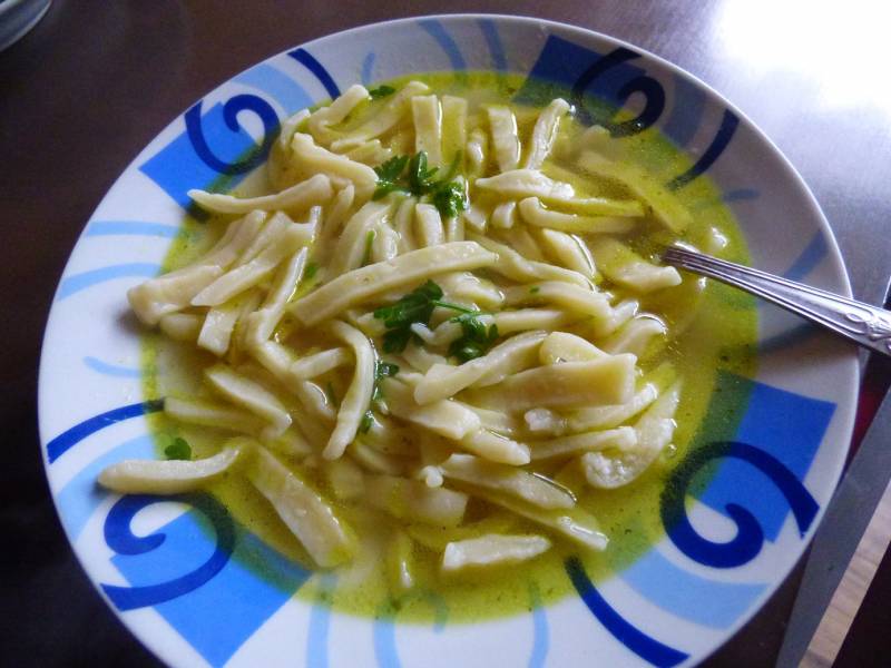 Rosół z Kaczki i makaron robiony,gruby ale taki dzieci lubią :mniam