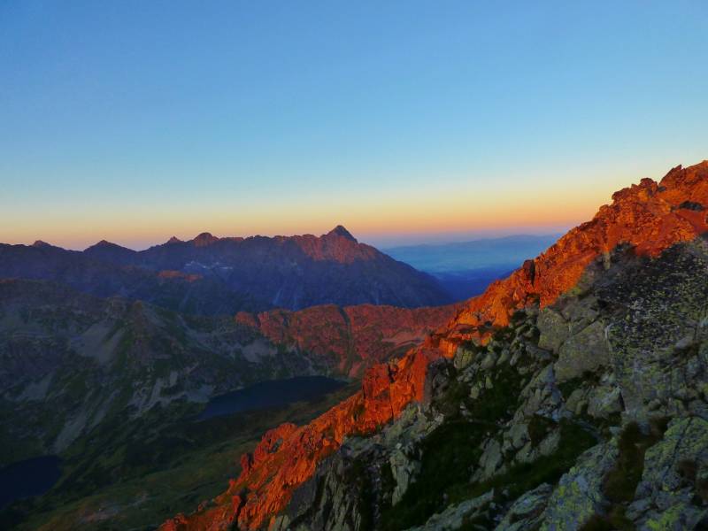 od 4 powoli widzieliśmy budzące się świt,synowie odpoczywali pod szczytem Rysów spotkaliśmy dwóch turystów,myślałam ze idą na Rysy.Był to Starszy Pan,z synem którzy nie mogli zejśc ze szczytu od wieczora czyli spędzili w zimnie całą noc,na szczęście turyści którzy szli przed nami dali im pić gorącej Herbaty ,czekoladę kanapki i zadzwonili po pomoc.ja tez im dałam dwa batony,w drodze powrotnej ze szczytu uszli trochę metrów dotarła w miarę pomoc ratownik wezwał śmigłowiec bo trudno w to uwierzyć chłopak dostał ataku padaczki