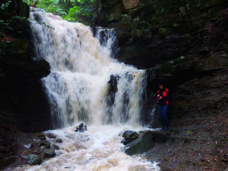 Od rana pada intensywnie w rzece wody przybyło i ze skarpy zaczęło sie lać