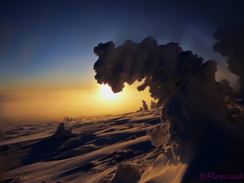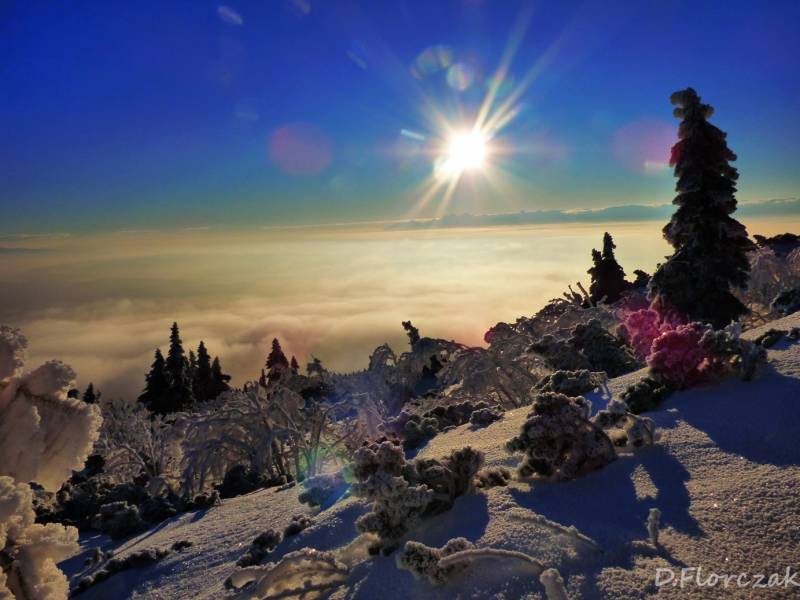 Tak Żanetko w soboty i niedziele potrafi być dużo miłośników wschodów słońca, zimą mniej a latem może być ich nawet 2 tysiące :blink: dlatego staram się przez cały rok chodzić na wschody w tygodniu jak ludzi mało gwizdac teraz tak się złożyło że wybrałam niedzielę bo ta zima przeważa frontami wypogadza się zaledwie na jeden dzień, żeby podziwiać piękna szadź i śnieg trzeba iść na wysokość 1000m,