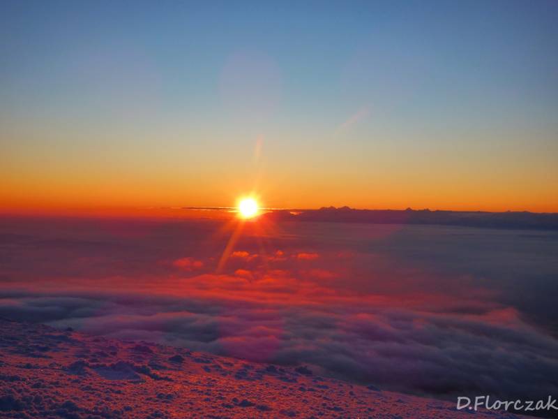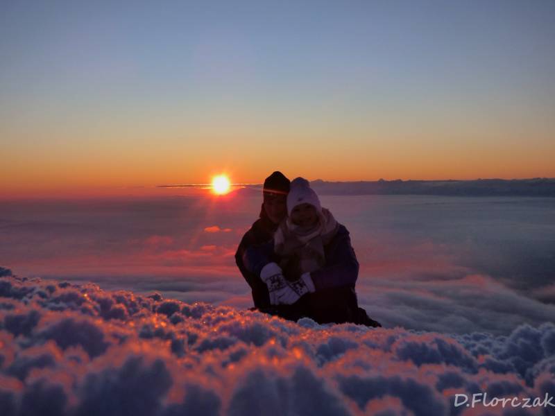 Na Starym roku pomimo soboty w ciężkich i trudnych warunkach podziwialiśmy wschód słońca w 7 osób natomiast wczoraj na szczycie było 200 osób :kocham jak dla mnie tłoczno ale byłam ze znajomymi to znaczy znalazłam ich w tłumie, chociaż nigdy wcześniej ich nie znałam osobiście, bo byłam sama,mąż był w pracy.
