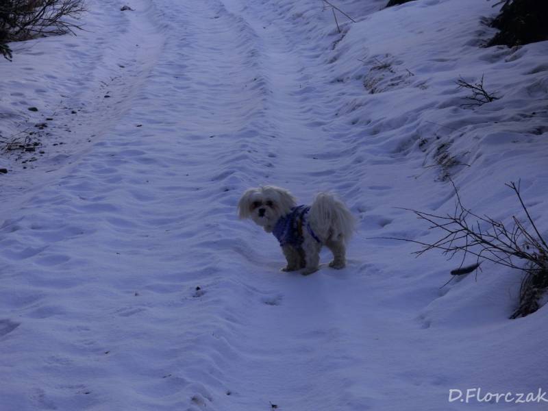 Miłko :kawa każde przebywanie w górach ma swoja magie :kocham jeszcze jak mogę to wszystko przeżywać osobiście to do szczęścia potrzebuję zdrowia i silnej woli aby po mimo dużej odległości w mrozie i pod górę tam dotrzeć.Wczoraj wybrałam się na Mosorny Groń około 13.40.Ubrałam buty zimowe nad kostkę i w żaden sposób nie mogłam przejść przez mały potok :mlotek kamienie zlodowaciały.Nie chcialo mi się wracać do domu po gumowce i ściagać buty.Po ostatnich wiatrach drzewa wiszą nad potokiem że mozna po nich przejść,ale są wąskie i lezą dwa metry nad woda jezeli się poślizgnę to wpadam prosto do wody,do tego nie moglam znależć żadnego patyka aby się nim podeprzeć,z Bożą pomoca jakość przeszłam a z powrotem wracałam wyciągiem,dobrze ze do 16 tylko działa.