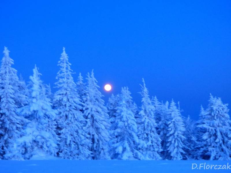 we czwartek rano pobudka przed 3 niebie wyjaśnione mróz -12 st i poszłam sprawdzić swoja kondycję przed EDK .O 3 wyruszyliśmy na szlak w dwóch samochodach kilkoro turystów się przebierało do wyprawy na Babią ,my wolnym ale stabilnym krokiem,ruszyliśmy na szlak,bylo zimno ale nie tak bardzo jak ostatnio.Trzech turystów minęlo nas szybkim krokiem,zastanawiałam się po co tak pędzą,natomiast małżeństwo młodsze od nas też nas wyprzedziło w takim tępie że pomyślałam hola,hola