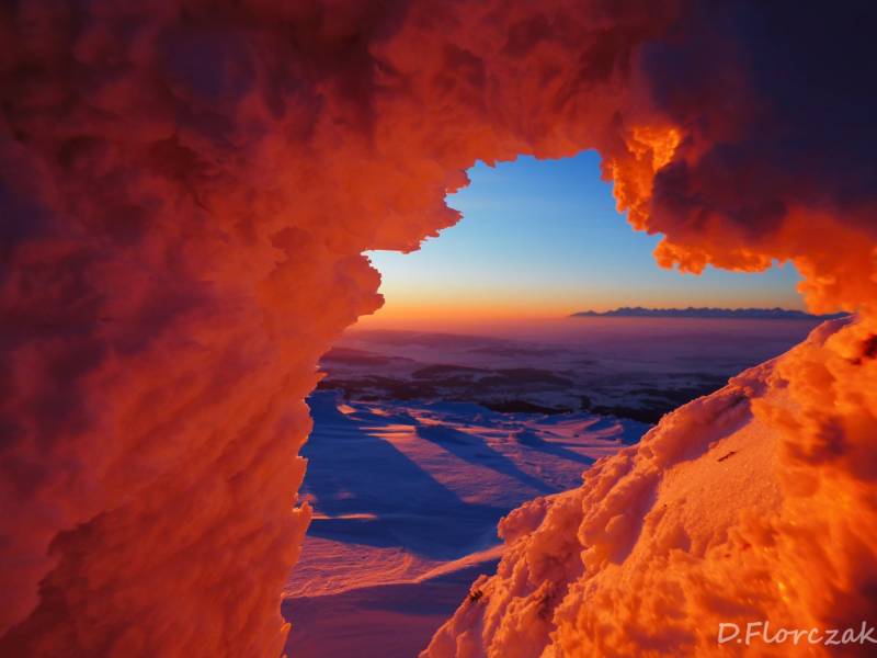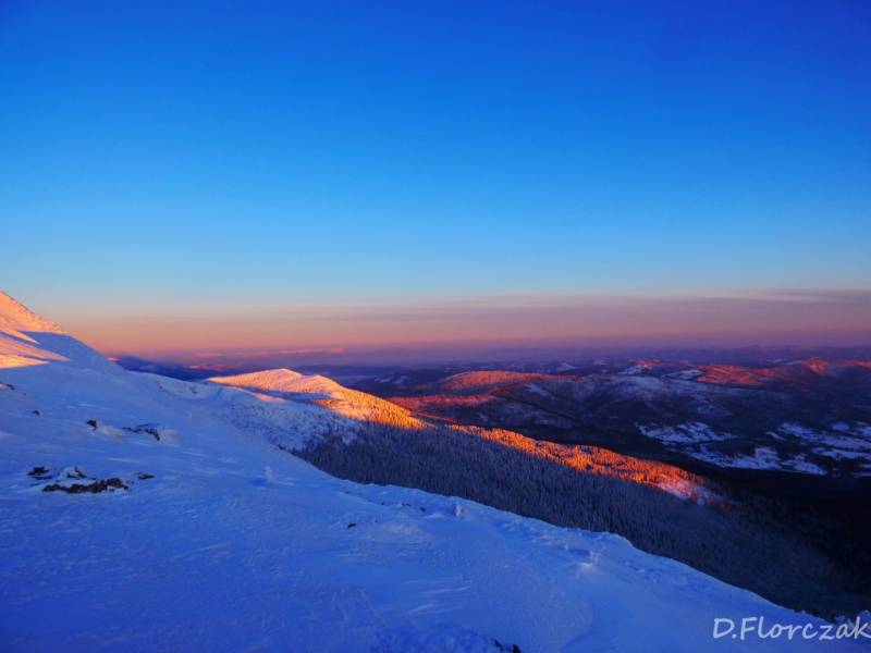 Od Kępy dzień zaczął się budzić i jest to najpiękniejsze zjawisko na ziemi,przejrzystość powietrza niesamowita przed szczytem zaczęło wiać Tatry na wyciągnięcie reki my podziwiamy pierwsze wynurzenie słońca a wszyscy mega turysci tak zmarzli na szczycie ze zamiast podziwiać to,po co przyszli to zajęci byli rozgrzewka
