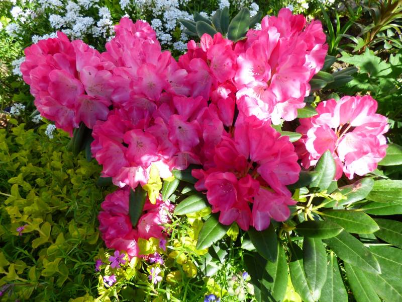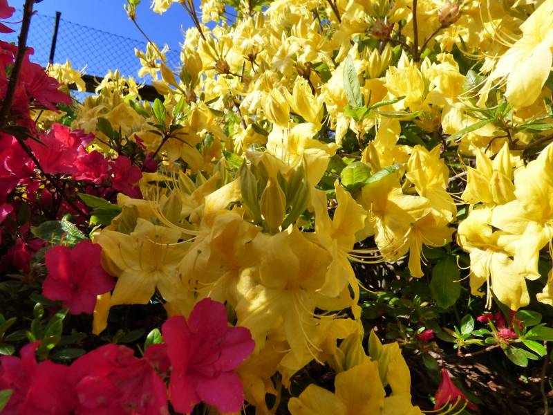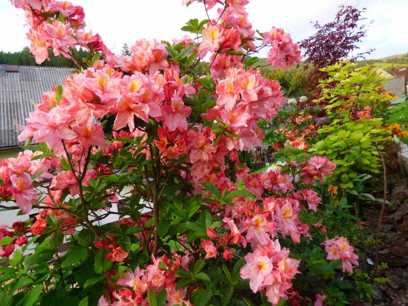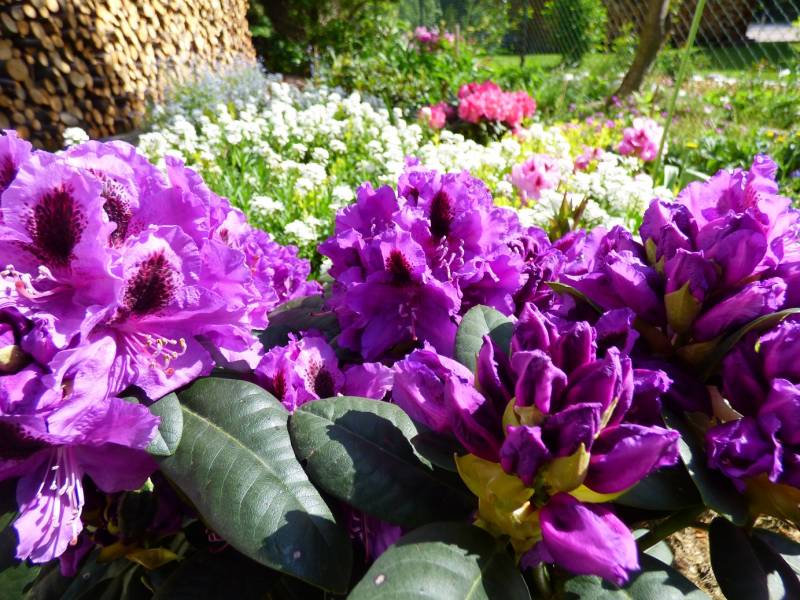 Niektore rododendrony mialy zmrożone paki kwiatowe od wiatru i mocnych przymrozków,ale mialy tak mnóstwo kwiatów ze nie było tego widac,a azalie przecudnie przezimowały.nawet susza im nie zaszkodziła.