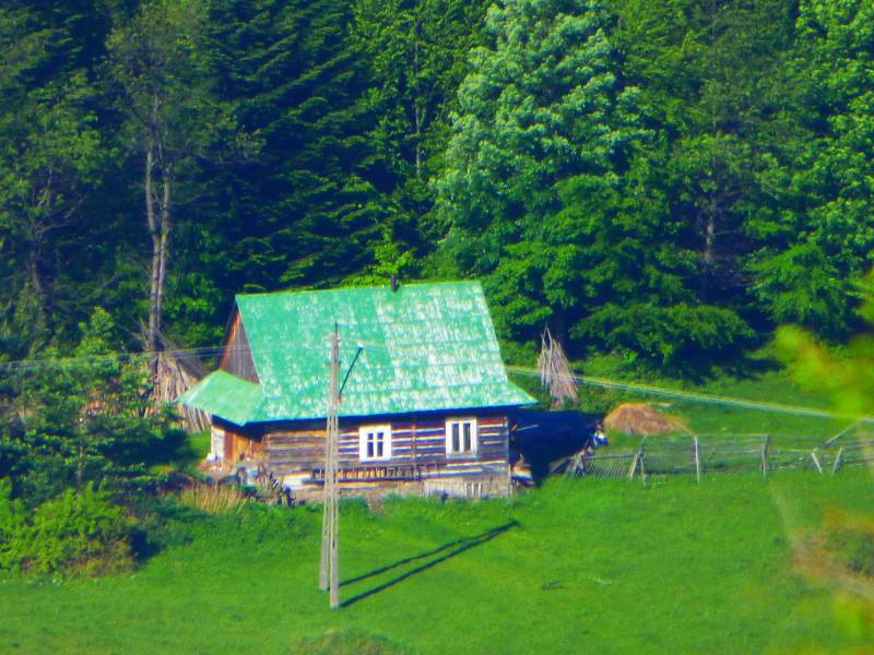 Widok na Norczak i pusty domek po Pani Marysi,przeszło 80 lat w nim mieszkała od 50 samotnie.