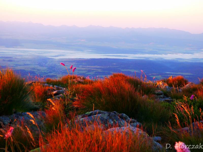 przed 6 byliśmy na miejscu widok na Słowację zapierał dech w piersiach,turystów 0 cisza,tylko kilka ścieżek wydeptanych w tym rejonie.