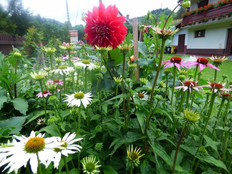 dalie kwitną ale deszczowa a potem upalna pogoda im nie sluży,Jeżówki to mój bzik kocham je za to ze przyciągają pszczółki, motyle i najróżniejsze owady.Z roku na rok rozsiewam je w najróżniejsze miejsca w ogrodzie,te białe i różowe są najliczniejsze :woohoo: