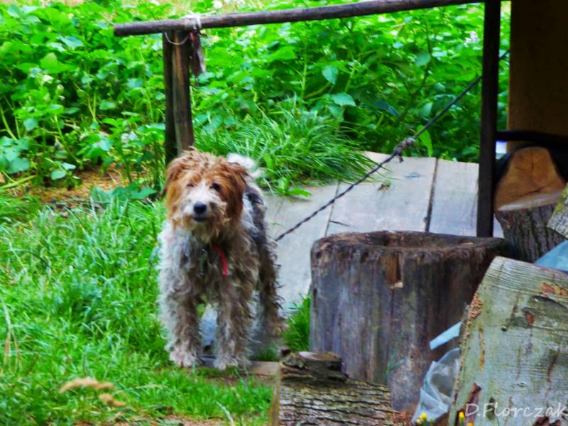 Staruszce rodzina dowozi jedzenie i wodę,ale sama już jest bardzo schorowana wychodzi tylko nakarmić psy jeden chodzi luzem,drugi uwiązany jest przed wejściem,jako straszak przed obcymi ,pierwsze grożnie szczekał aby tylko kiedy zbliżylam się do niego,stał się łagodny.