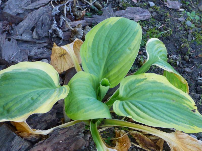 Jedna hosta ma ciągle liście,a inne poszły spac.