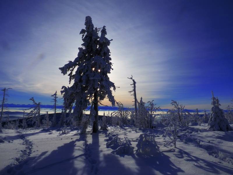 Zimę mamy piękną bo śnieg jest,i mgła otula wszystko na drzewach zrobiło piękna szadź,ale czasu teraz na wędrówki brak.
