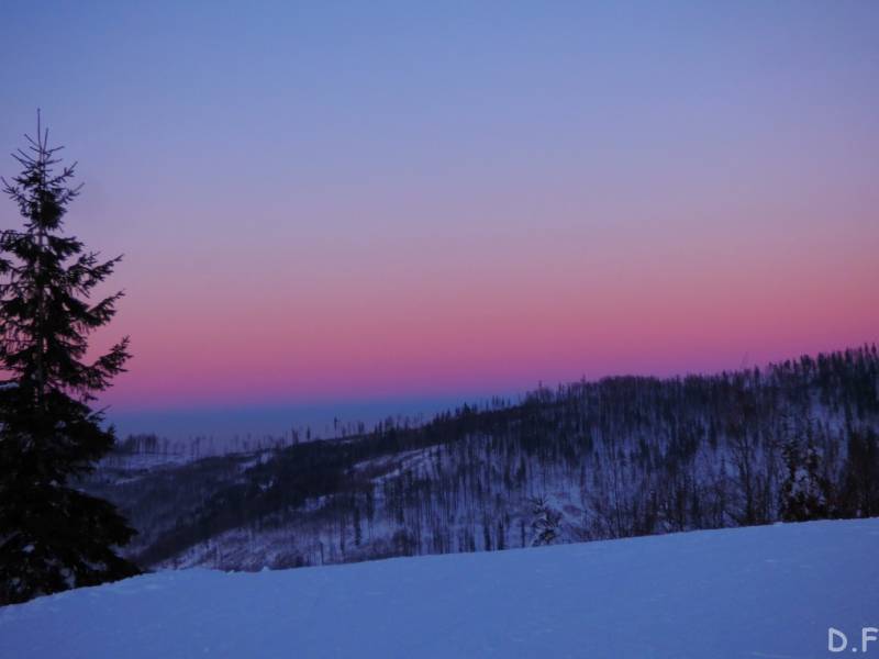 Niestety w nocy dotrze do nas silny halny,który zwiastuje ocieplenie i mam nadzieje że nie połamie kolejnych drzew.