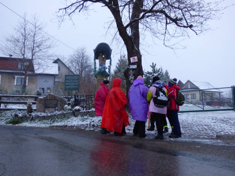 Znajduje sie nad ławeczka gdzie można odpocząć,na rozwidleniu szlaku żółtego i niebieskiego,na Wełczę,ale jeśli na ławeczce usiądziemy to go nikt nie zobaczy,bo trzeba wejść za ławkę do lasu kilka kroków.Ktoś miał powód aby Go tam zostawić.