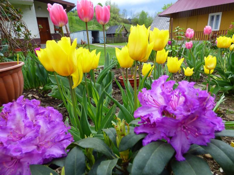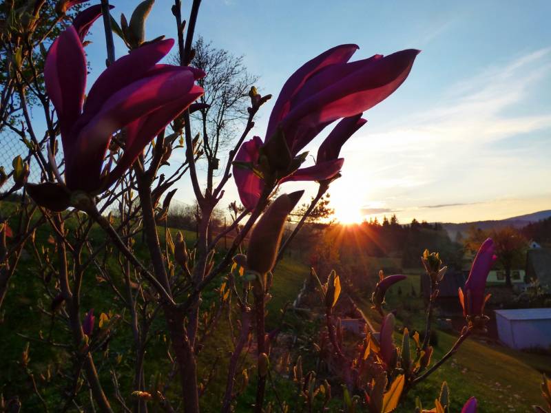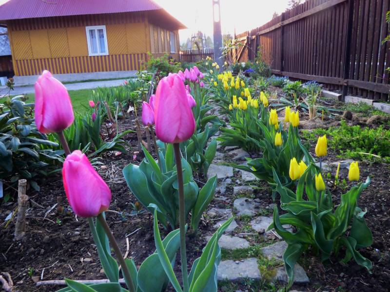 Wiosna tego roku jest sucha u nas na szczęście mieliśmy dużo śniegu,przymrozki -5 nękały nas do środy, czwartek było -2 ale kwiaty doniczkowe wyniosłam już wszystkie na pole,przesadziłam do większych doniczek i czekam na deszcz bo trawa już rudzieje.Jeden dzień świąt byłam u mamy,drugi dzień rodzeństwo przyjechało do nas 8 osób.Od czwartku piekłam ciasta na przemian z myciem okien,ale że późno święta to zdecydowałam się umyć wszystkie okna i zmienić firanki,teraz mogę się cieszyć tylko ogrodem i górami.Kupiłam dzisiaj kaczki i drób.Jedne tulipany przekwitły,inne kwitną a pozostałe w pąkach,piwonie też już maja duże pąki żółta Itoch ma jeden pączek :woohoo: W górach może halny zwieje w północnych częściach pasm wreszcie śnieg.Pierwszy raz w historii,w niedzielę wielkanocną po przyjeździe od mamy poszłam na zachód słońca na Babia odprężyć się.
