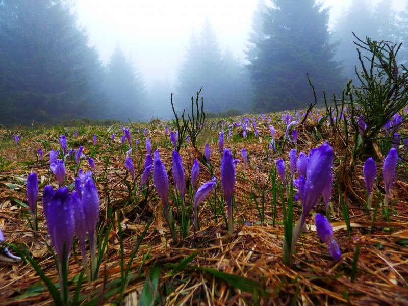 Krokusy kwitna na wysokości 1200m.