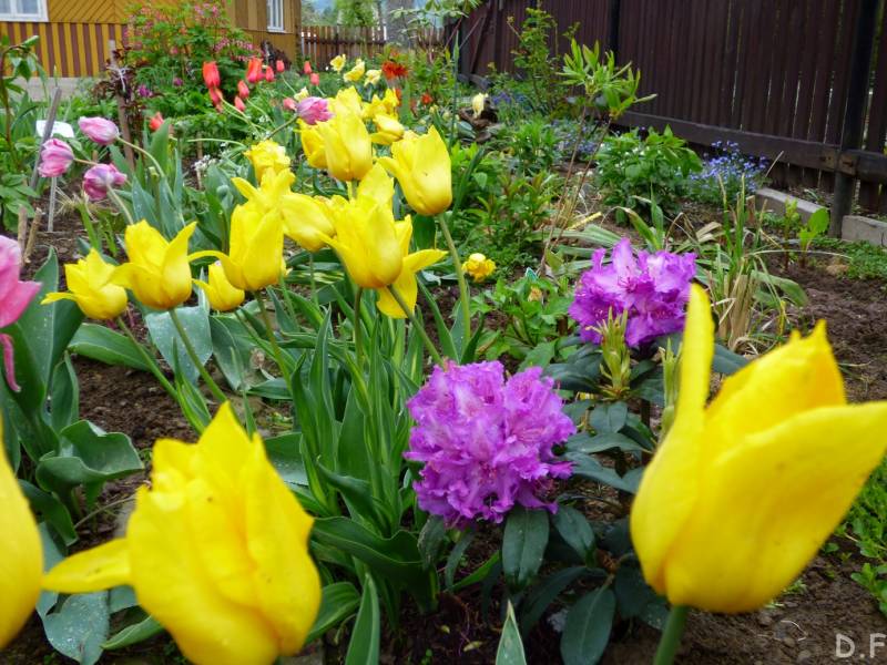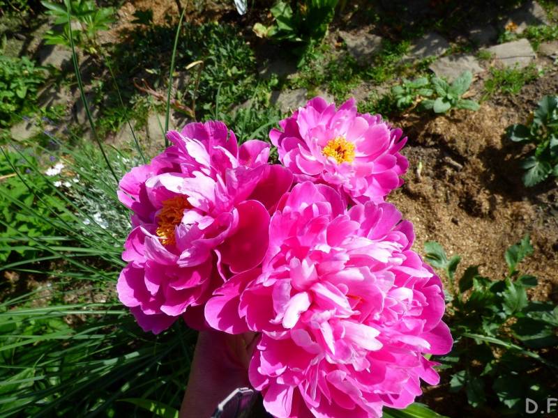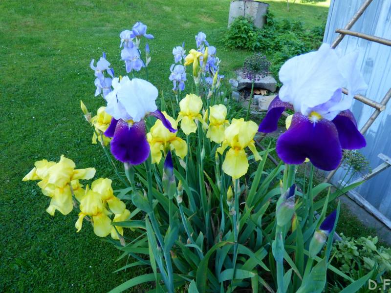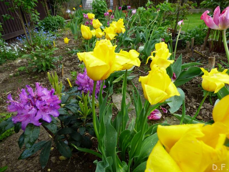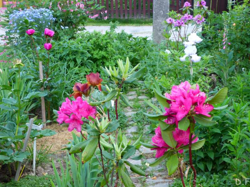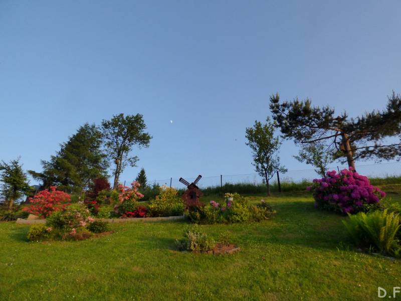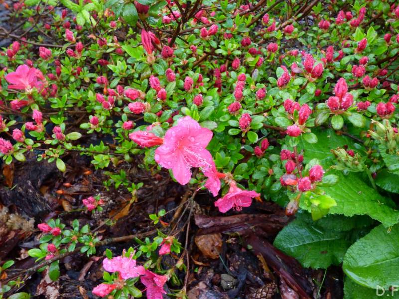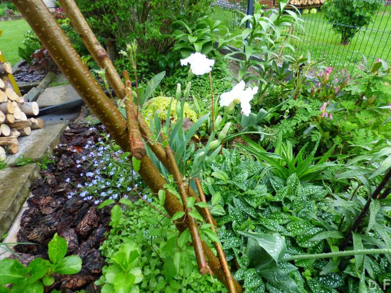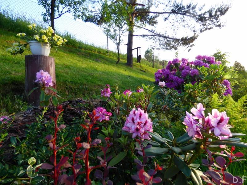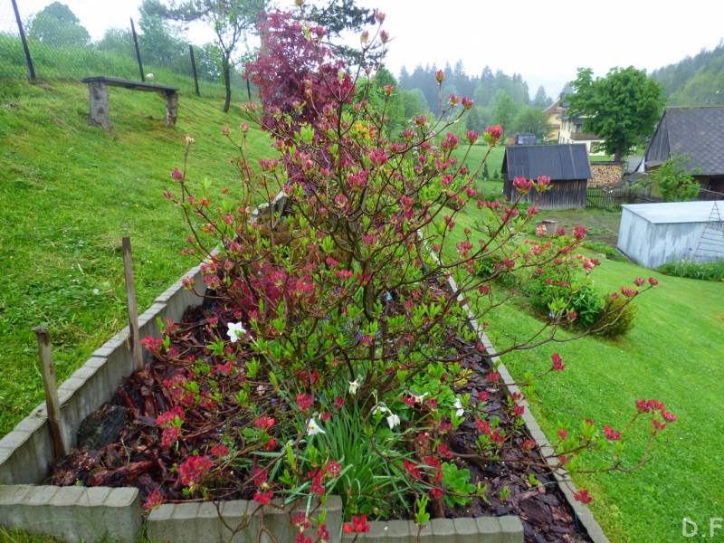 wyfrunęła nam z pod nóg,ale szybko wycofaliśmy się z tego miejsca aby ptak wrócił na jajka,mam nadzieję ze teraz już pisklęta wychowuje.Oczywiście grad obił delikatne kwiaty azali,rodka i irysów.