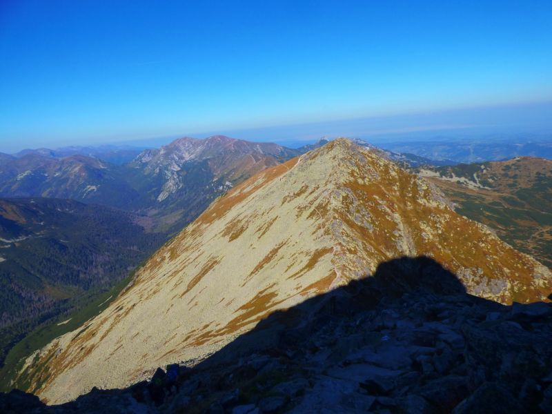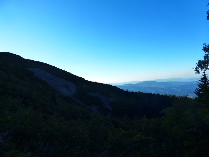 Mała Babia ma 1515mnpm,to drugie wzniesienie od dołu na zdjęciu,szlak rzadko uczęszczany,bo jest monotonny i bardzo długi.