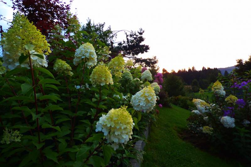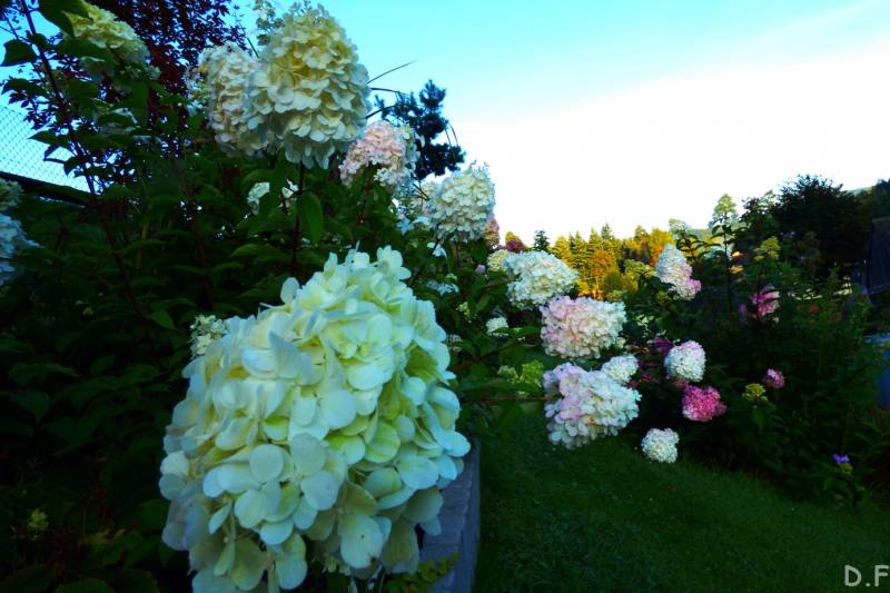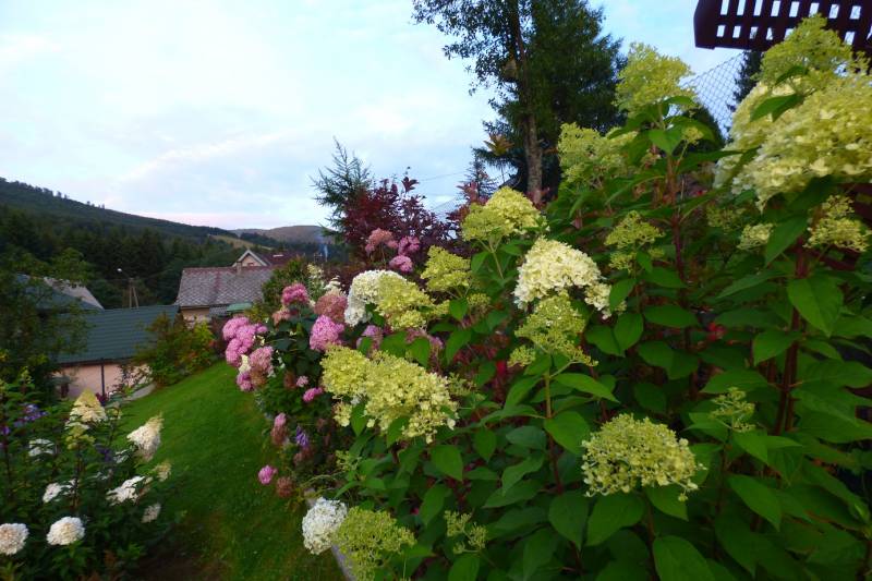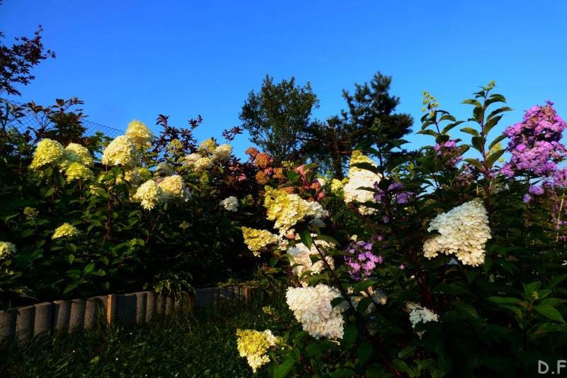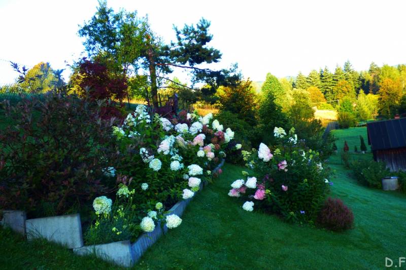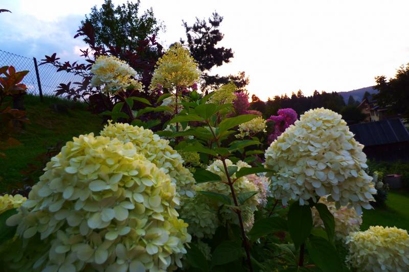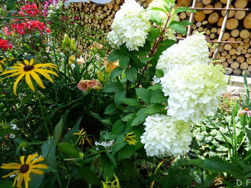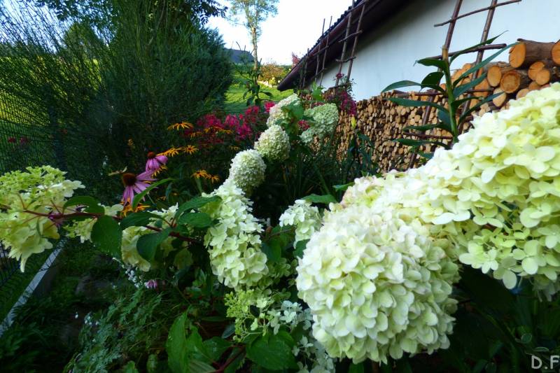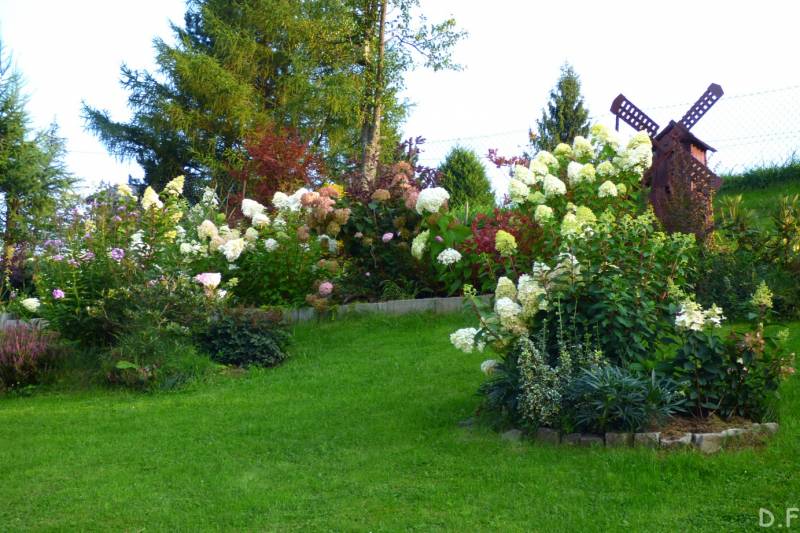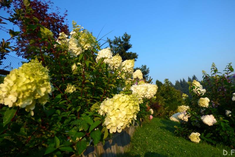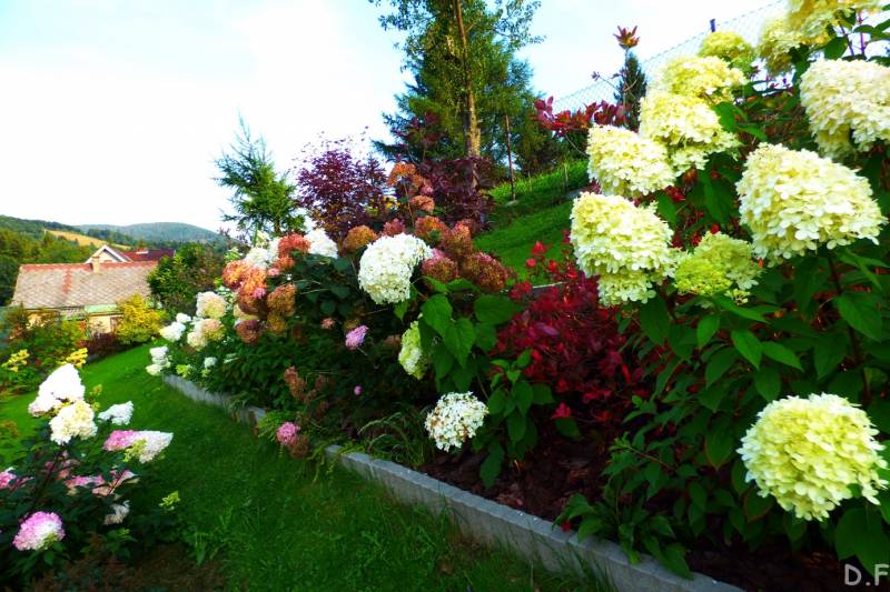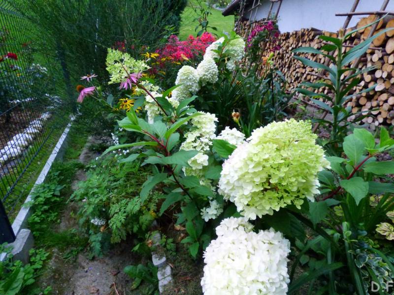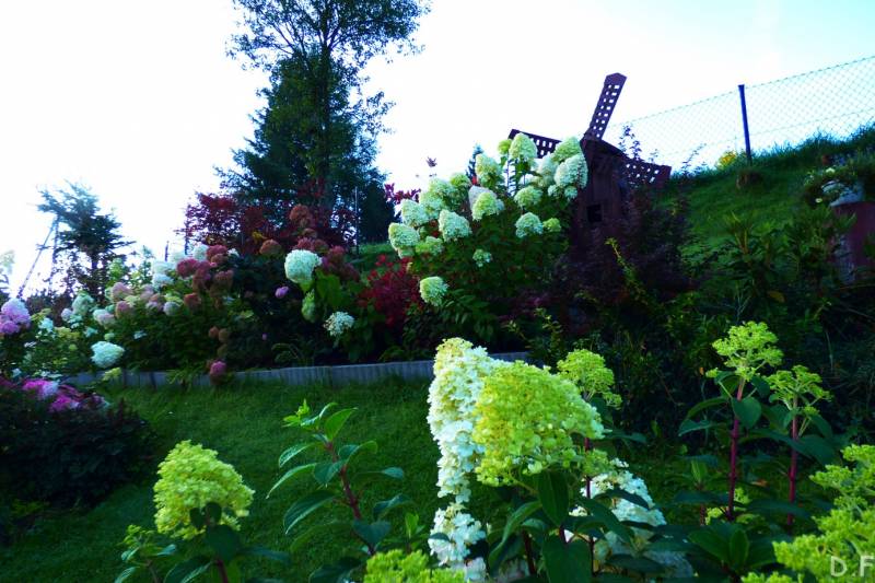 Teraz ogród jakby odżył,ilości wody które go podlały powinny na skarpie wystarczyć do jesieni,bo to stok północny,hortensje bukietowe się wreszcie rozwinęły